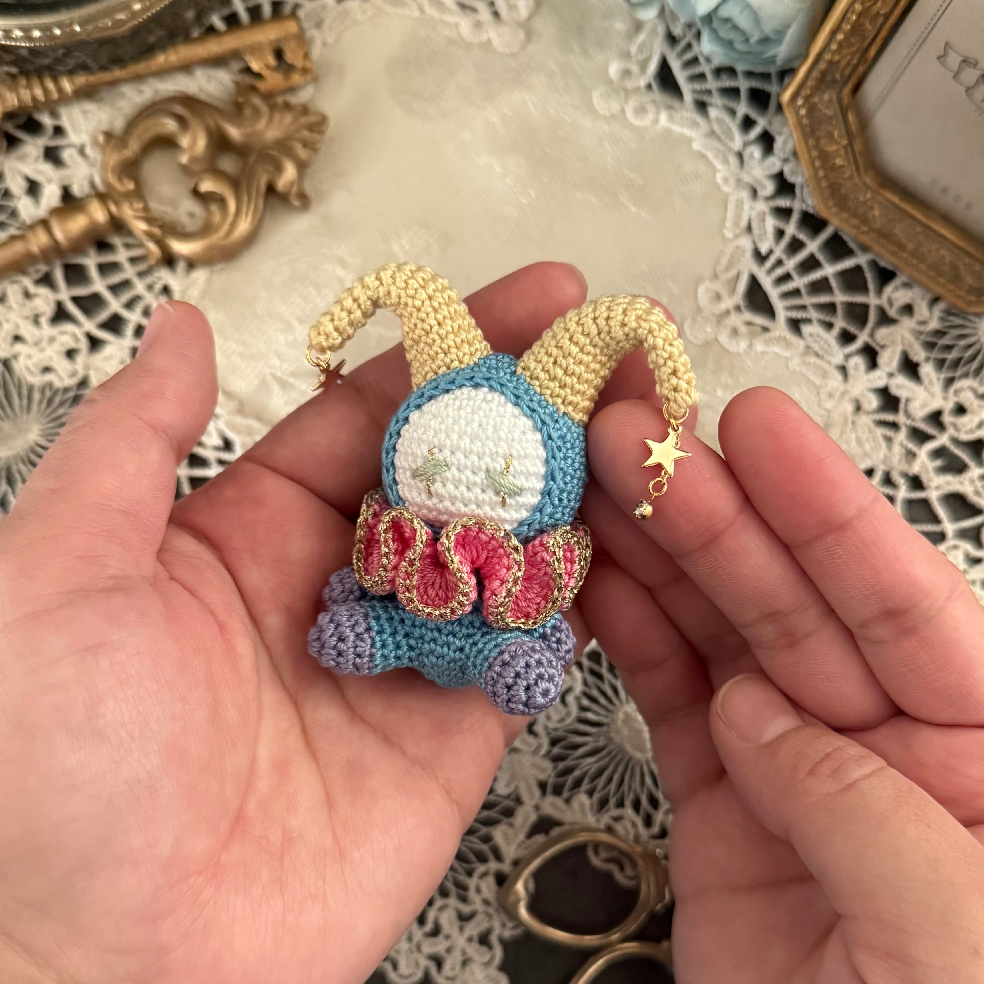不穏に佇むピエロ スモールサイズの手乗りあみぐるみ
